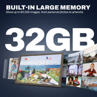 - BUILT-IN 32GB LARGE MEMORY: Built-in 32GB memory empowers a huge capability of storage, stores up to 80,000 photos. You can also connect a USB or Micro-SD card if you prefer.