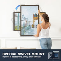 - Motion Sensor & Auto-Rotation: The smart motion sensor awakens the frame upon entry, ensuring your cherished memories are instantly accessible. This WiFi frame can be positioned on a table or wall, in portrait or landscape. When you rotate it, photos adjust automatically for the perfect fit. It offers versatile customization, including play order and image zoom.
